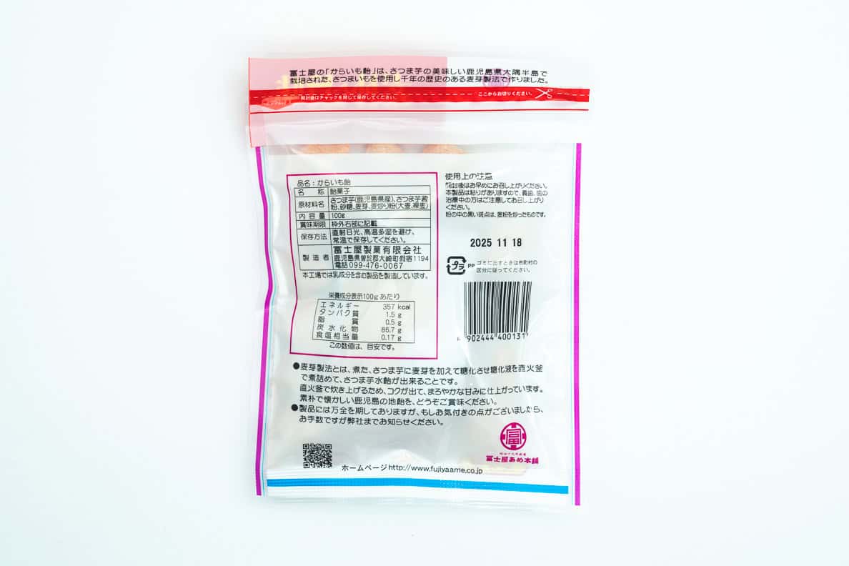 Fujiya Ame Honpo est une confiserie fondée en 1886, située à Osaki, dans la préfecture de Kagoshima. Elle est spécialisée dans la fabrication des « Karaimo Ame », des bonbons traditionnels au maltose à base de patate douce.