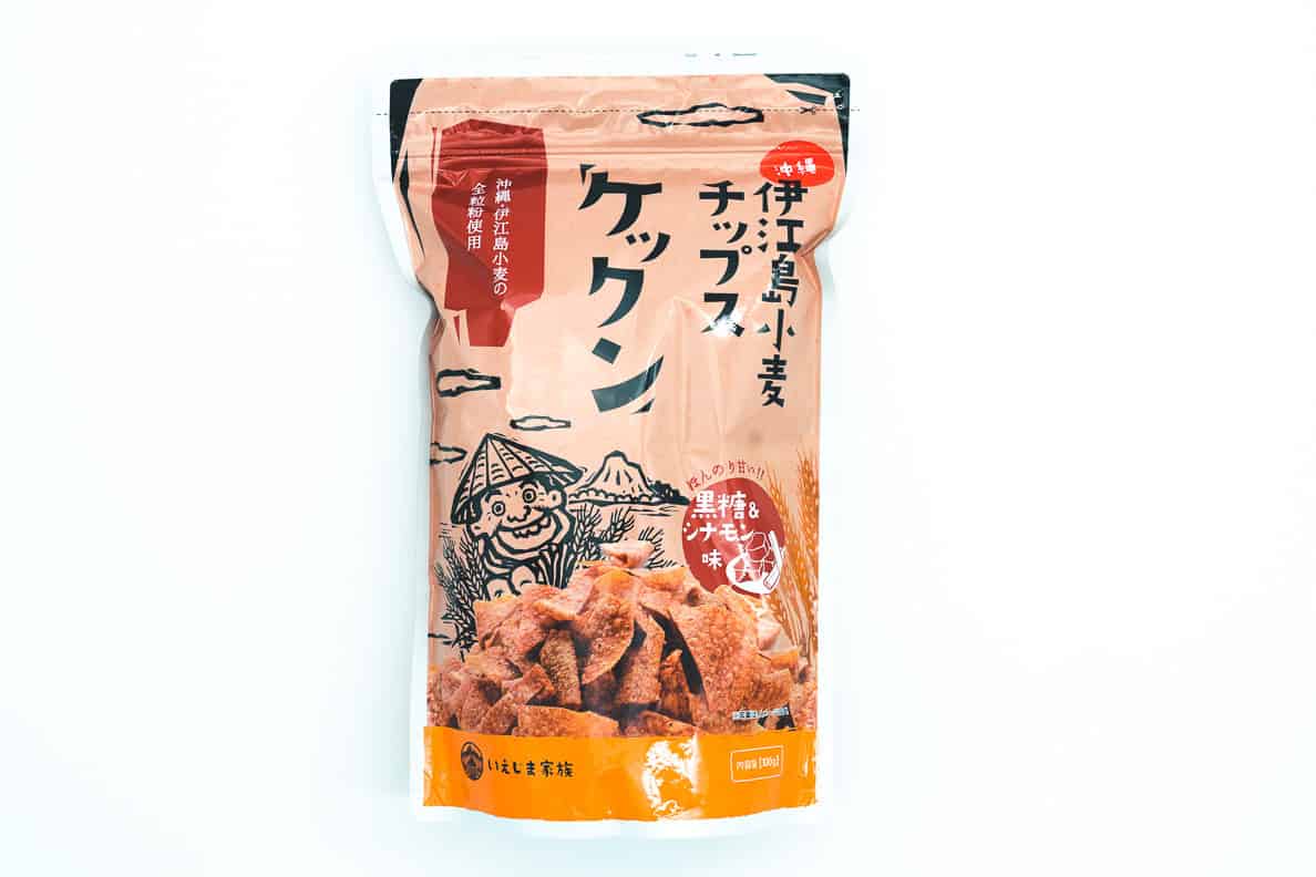 Ces chips de blé, légèrement sucrées, sont préparées avec du blé cultivé sur l’île d’Ie (Iejima) à Okinawa. Enrobées de mélasse de canne à sucre d’Okinawa, de sel et de cannelle, elles offrent un équilibre parfait entre douceur et saveurs épicées.