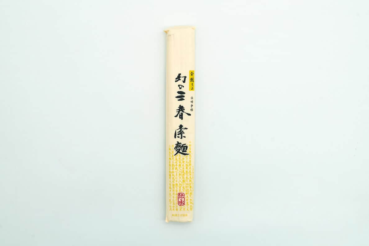 Les Miharu Somen, qui étaient autrefois un produit offert au shogunat à l’époque Edo, ont été ramenées à la vie par Yoshio Yanai, un maître artisan de nouilles à Fukushima. Ces nouilles sont fabriquées avec soin selon une méthode artisanale d’étirement manuel sans utiliser d’huile.