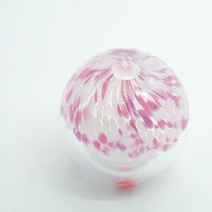 Toujours dans l’univers coloré du verre Tsugaru, ce petit vase exprime le moment précieux de la floraison des cerisiers après l’hiver d’Aomori. C’est ce qu’on appelle un Ichirin-zashi, un vase pour une seule fleur. Même avec une seule tige, il fait tout son effet. Il est petit, mais assez lourd, donc bien stable.