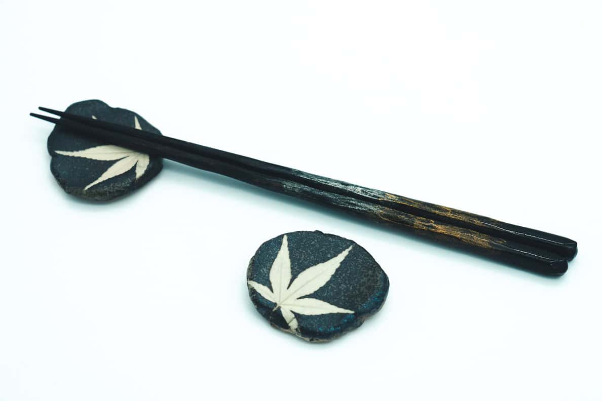 Voici un pose-baguettes.Sa forme plate lui confère une grande stabilité, rendant son utilisation pratique et agréable. Son motif est créé avec des feuilles d’érable cueillies dans le jardin de l’atelier Tsuganoyaki, rendant chaque pièce unique. L’émail d’un noir doux et profond est une teinte originale transmise au sein de l’atelier depuis plus de 30 ans. RUPTURE DE STOCK – PRODUIT NON DISPONIBLE