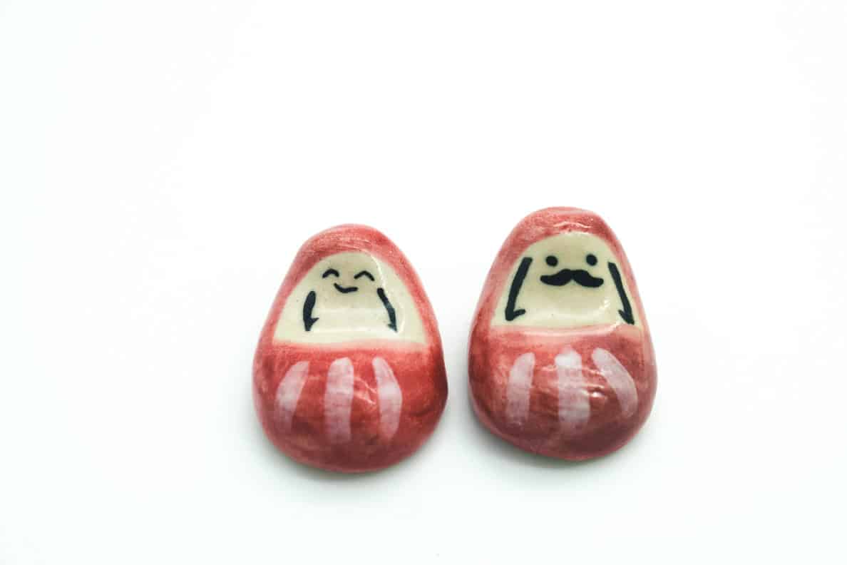 Le “Daruma”, c’est une figurine en papier mâché à l’effigie d’un moine nommé Daruma. C’est un porte-bonheur censé exaucer tous les souhaits.