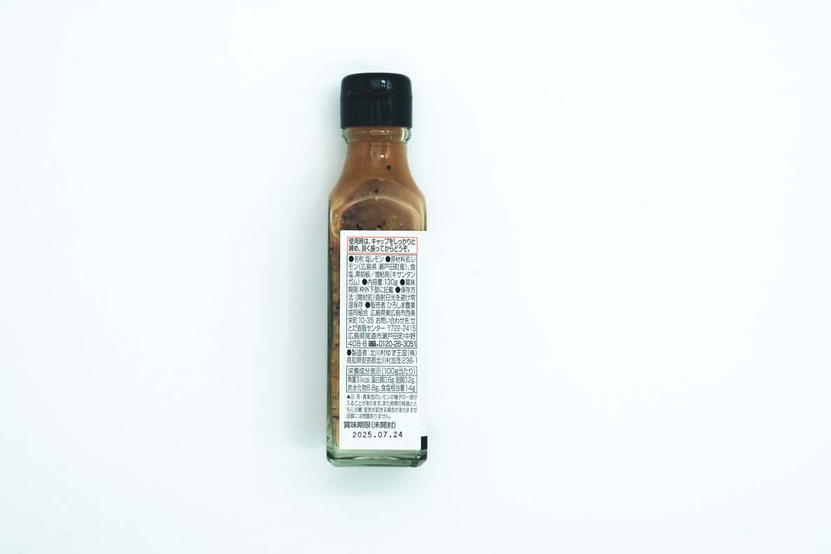Cette version de la sauce Shio Lemon ajoute une touche de poivre à l’assaisonnement classique, conçu pour mettre en valeur les citrons de Setoda. Elle est préparée uniquement avec des citrons de Setoda, du sel de la mer intérieure de Seto et du poivre.