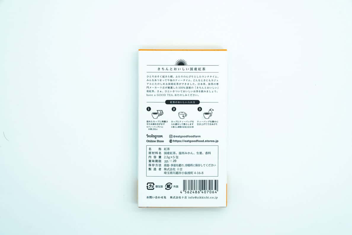 Ingrédients: Thé noir du Japon, mandarine Unshu Mikan, gingembre, arôme